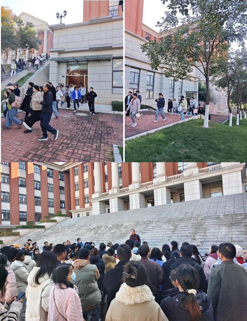 培训结束后,公安处组织全体参训师生进行了应急疏散实战演练。演练过程中,师生听从指挥、行动迅速,疏散过程井然有序,全员安全撤离,为本次专题培训活动画上了圆满句号。