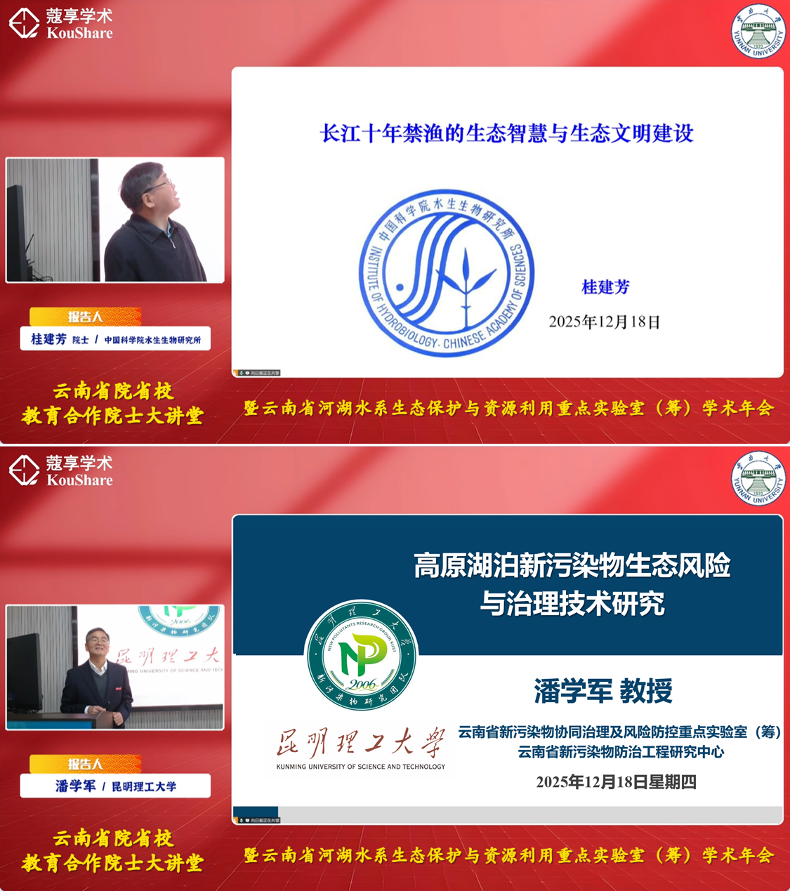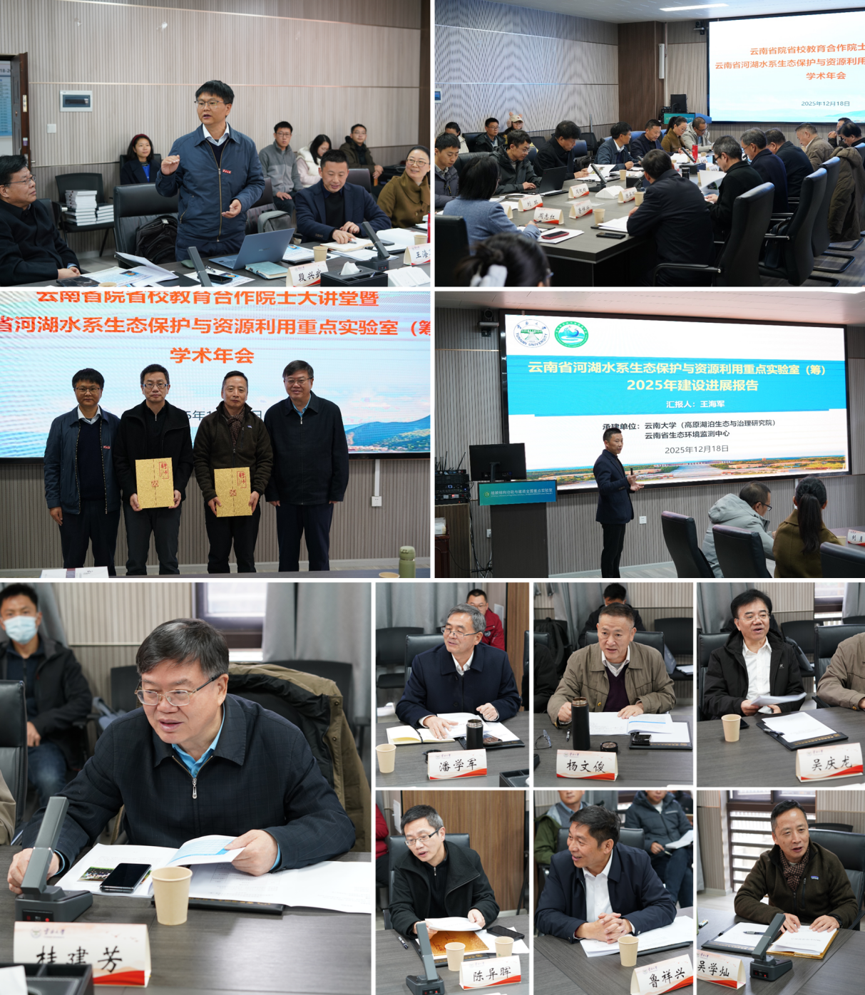 2025年12月18日,云南省院省校教育合作院士大讲堂暨云南省河湖水系生态保护与资源利用重点实验室(筹)学术年会在云南大学呈贡校区高原湖泊生态与治理研究院顺利召开。