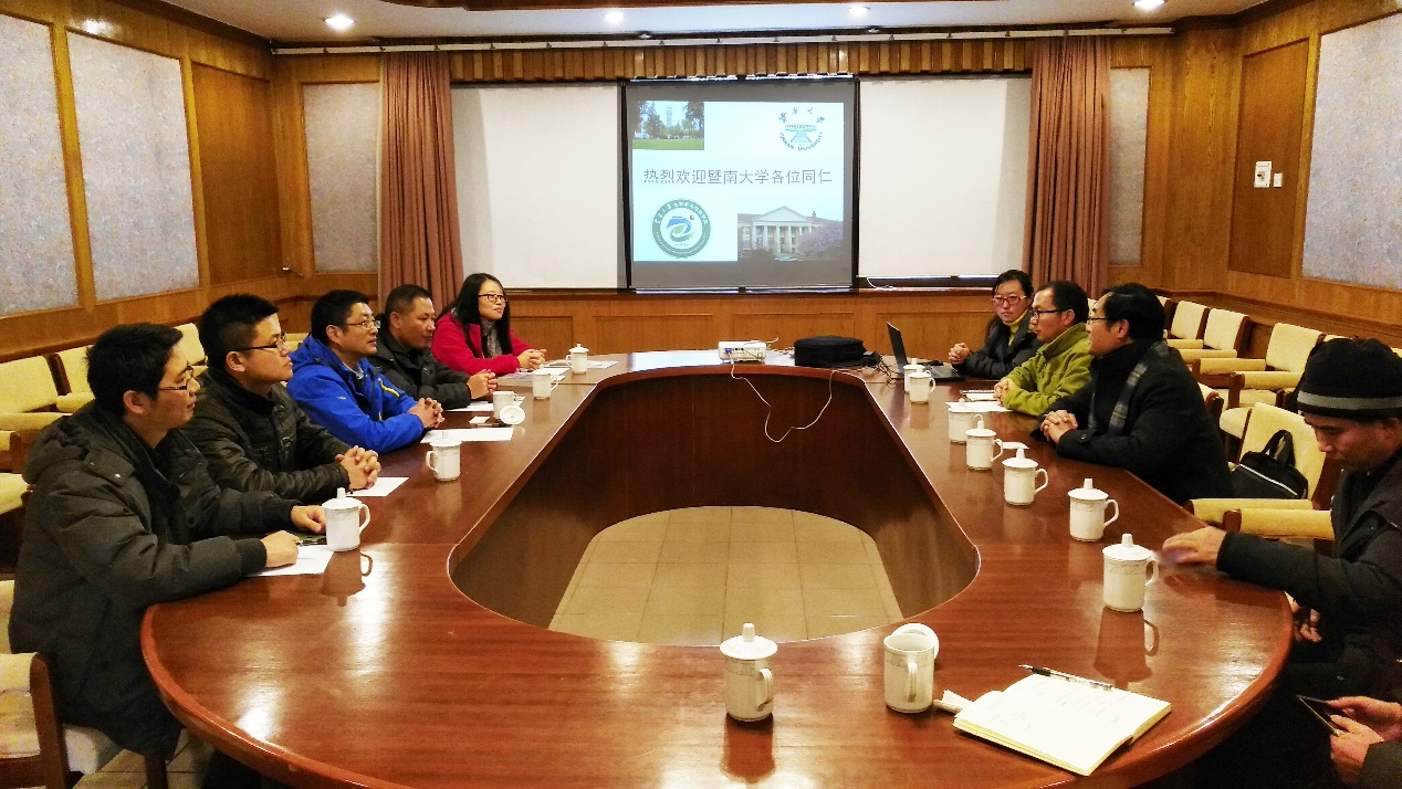 2018年1月11日,暨南大学生态学系(水生生物研究中心)副系主任许德麟副研究员、生态学教研室主任张修峰研究员、王庆副教授、赵建刚博士、肖林博士一行5人到云南大学生态学与环境学院生态学系进行访问,就生态学学科建设和人才培养等方面进行了座谈与交流。