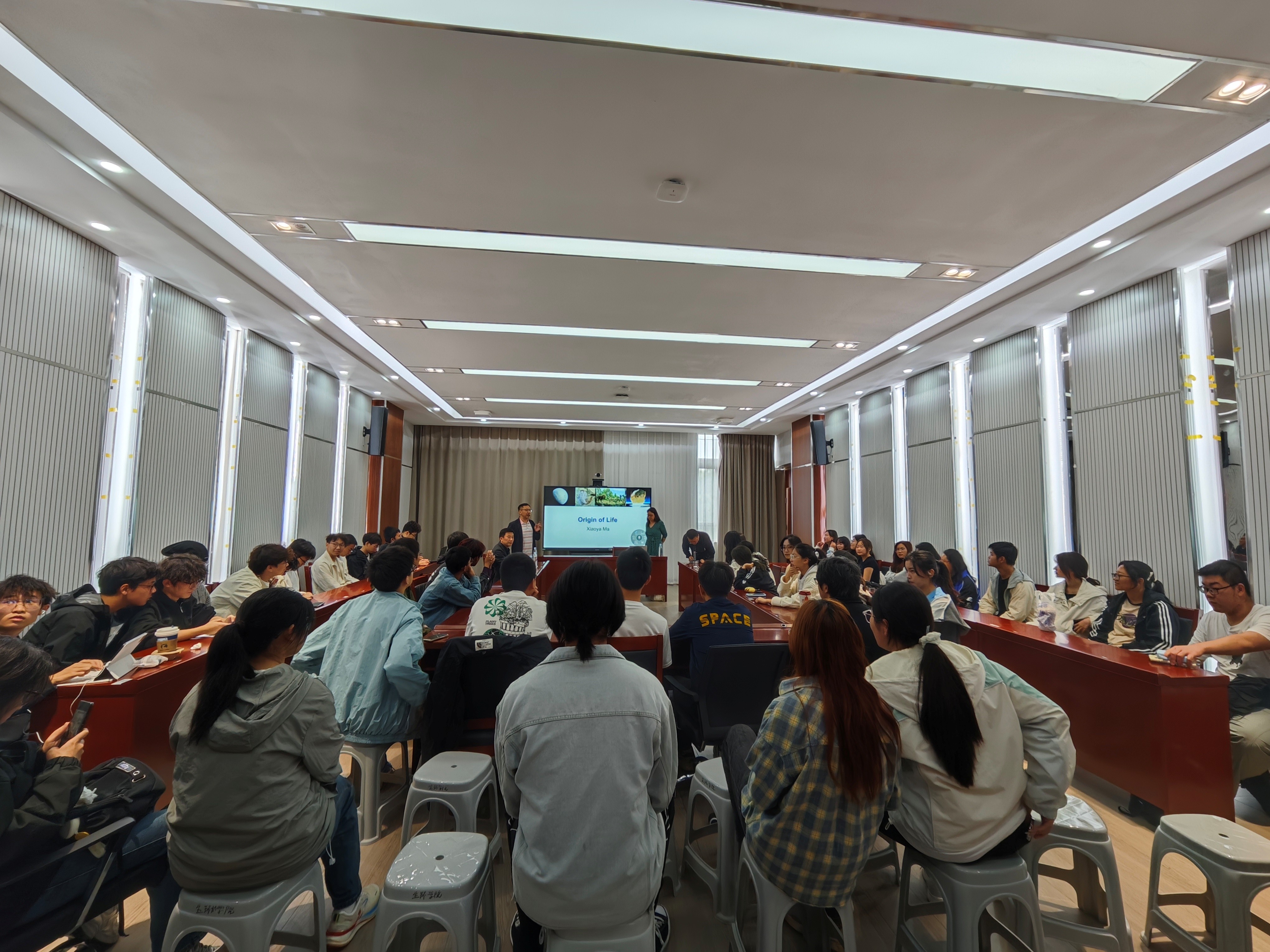 2025年9月26日下午,云南大学生态与环境学院本科生出国留学宣讲会在学院3209会议室顺利举办,为意向出国留学的本科生搭建海外教育资源了解平台。此次宣讲会由学院吕军副书记、王海军副院长主持,云南大学特聘教授马晓娅讲解,首先进行了“Origin of Life”精彩报告,介绍了寒武纪生物大爆发(化石证据)形成的生态、环境和进化因素,其次重点介绍了埃克塞特大学综合情况、学术影响力、生态学专业方向及国际交流读研模式,吸引了众多学生参与。